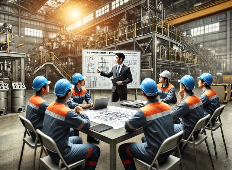 Desarrollamos programas de formación interna a medida, con diagnóstico previo, diseño instruccional y materiales adaptados al entorno industrial. Cubrimos desde capacitaciones específicas (automatización, lectura de planos, normas técnicas) hasta habilidades transversales como liderazgo operativo, trabajo en equipo, comunicación eficaz y adaptación tecnológica, entre otros.